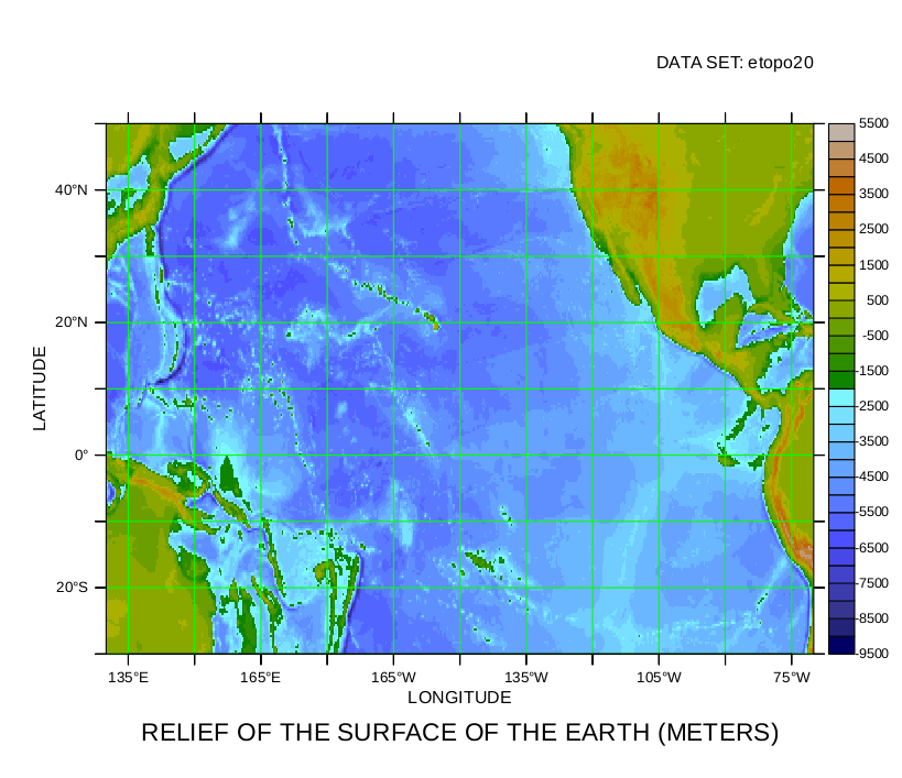 yes? USE etopo20 yes? SHADE/PAL=dark_land_sea/GRAT=(COLOR=green) rose
