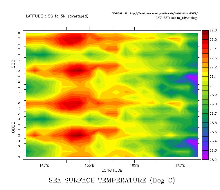 yes? fill/x=140E:180E/L=1:24 sst[Y=5S:5N@AVE]