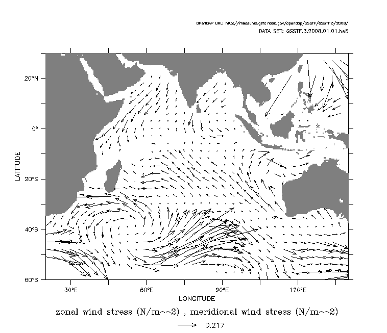 ! Let's look at the wind-stress vectors in the Indian Ocean