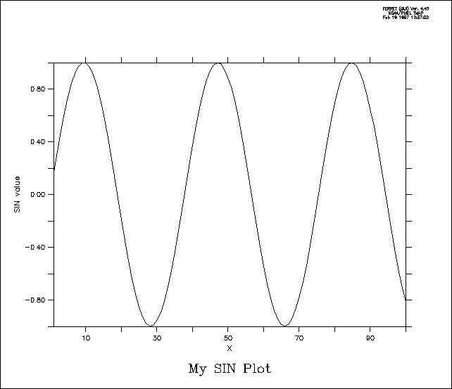 yes? PLOT/X=1:100/TITLE="My SIN Plot"/SET_UP sin(x/6) !use /SET_UP yes? PPL YLAB "SIN value" yes? PPL PLOT