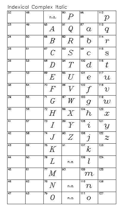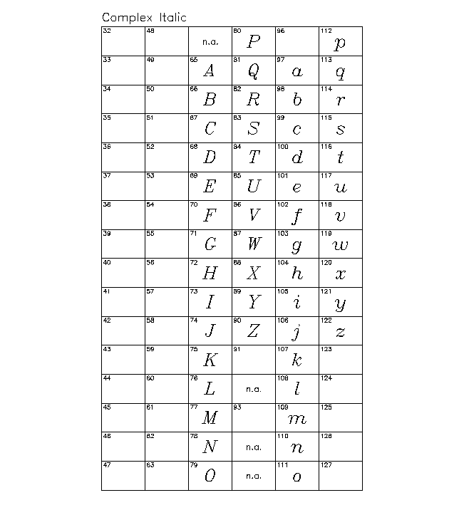 All labels in Ferret can be plotted using any one of 21 character fonts. The default font is SR (SimplexRoman) and other fonts are called by preceding their two letter abbreviation by an @, i.e., @CI for complex itallic.