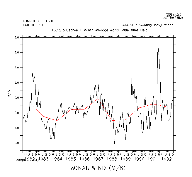 * The data set monthly_navy_winds (which is installed with Ferret) contains monthly wind values from Jan1982 through Dec 1992.