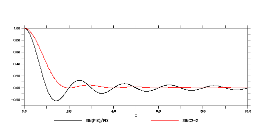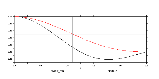 yes? plot/x=0:2 sinc,sinc2^2 yes? ppl aline,1,0,.5,2,.5 yes? ppl aline,1,.60335,-.3,.60335,1 yes? ppl aline,1,`2*.44295`,-.3,`2*.44295`,1
