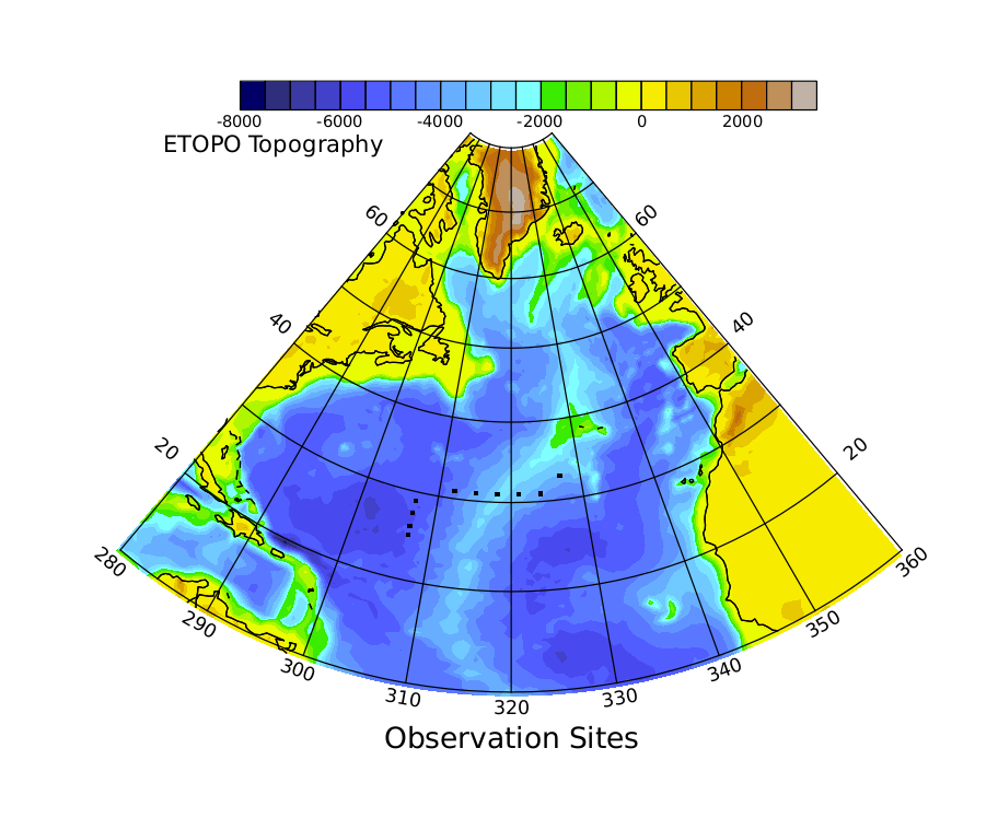 The next plot illustrates more techniques using a section of the hemisphere.The Ferret command script to create the plot is mp_stereo_demo.jnl.